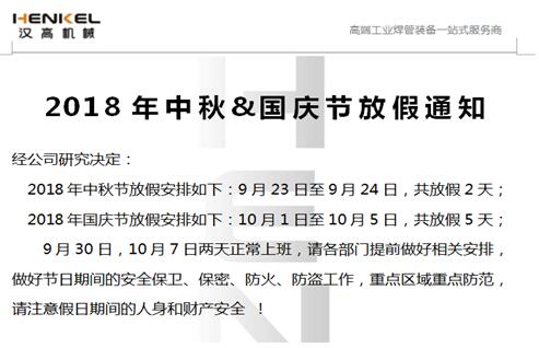 漢高機(jī)械在此祝大家國(guó)慶節(jié)快樂!國(guó)慶佳節(jié)喜來到,為你綻放快樂的煙花,愿你快樂每時(shí)刻;為你放飛健康和平鴿,愿你身體健康壯如牛;為你飄揚(yáng)成功的彩旗,愿你財(cái)源廣進(jìn),事業(yè)順暢步步高。國(guó)慶快樂!