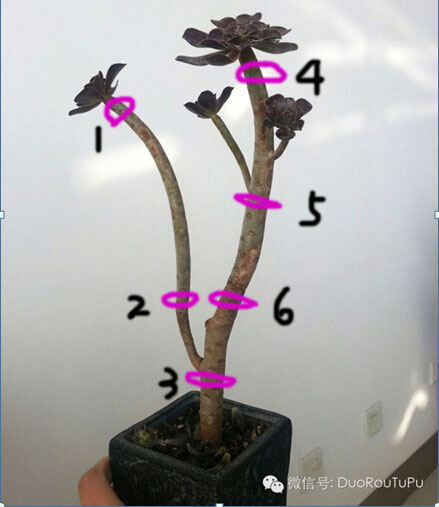 3. 砍頭:繁殖的一種方式。把肉肉的頂端切除,然后埋入濕潤土壤中繁殖。多肉植物繁殖的一種方法,不適用于所有品種。