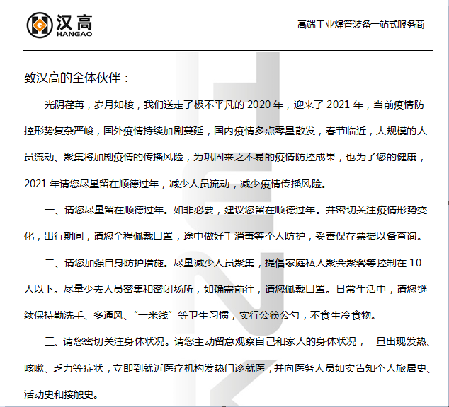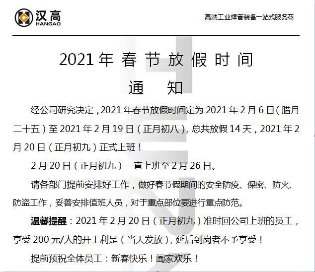 新的一年里,漢高機(jī)械祝大家財源廣進(jìn),闔家安康?。。?/span>