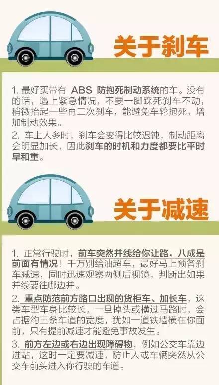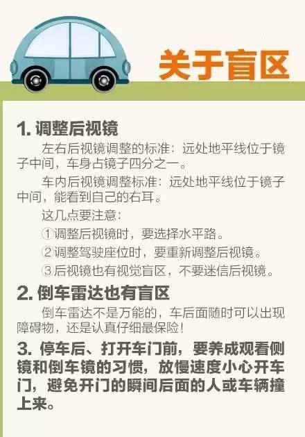 ?、?/span>倒車雷達也有盲區(qū),不要全信。②車上人多,剎車要更早更重。③前車突然讓路,八成有情況,千萬別超車。④向右轉(zhuǎn)小彎,向左轉(zhuǎn)大彎。⑤女士開車上車先落鎖......