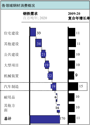 圖表2 印度國(guó)內(nèi)各領(lǐng)域鋼材消費(fèi)情況