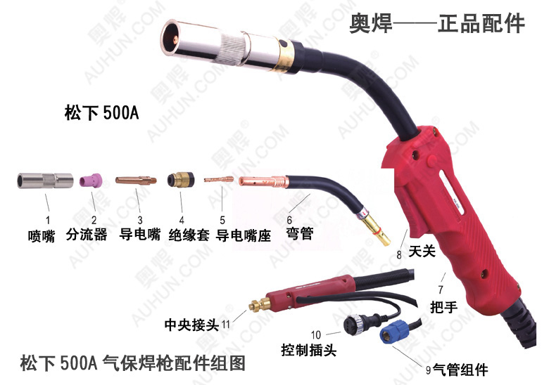 松下500A氣保焊槍(氣冷式)適用于:350-500A氣保焊機使用,暫載率60%時焊機電流500A,使用焊絲直徑:0.8-1.6MM,相關(guān)配件:保護套,彎管,導(dǎo)電咀,連桿,絕緣螺母,送絲管。